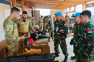 "Pada kesempatan ini juga, personel Tim EOD dari Satgas Kizi TNI Konga XXXVII-J Minusca Car yang dipimpin oleh Letda Czi Tito Riesa Azmighafa, S.Tr.(Han) selaku Dantim EOD dapat berinteraksi langsung dan saling bertukar informasi antar sesama pengawak alat khusus penjinak bom maupun bahan peledak dilanjutkan dengan praktek lapangan tentang bagaimana cara penggunaan alat-alat tersebut." imbuhnya