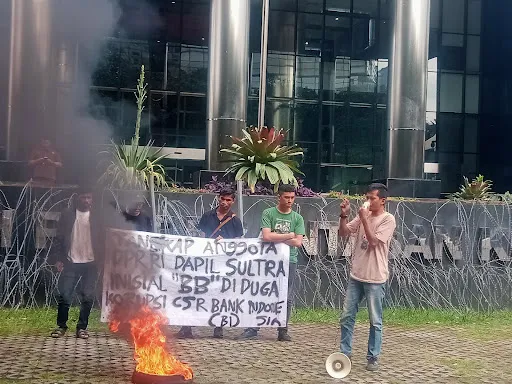 kala di wawancara oleh awak media, salah seorang Pendemo, bernama Tomi Dermawan selaku Ketua Aktivis Peduli Hukum Sulawesi Tenggara katakan aksi demo tersebut perihal indikasi korupsi dana CSR bank Indonesia di tahun 2022 silam.